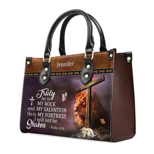 Personalized Christian Leather Bag, Meaningful Personalized Leather Handbag - Truly He Is My Rock And My Salvation, Faith Handbag