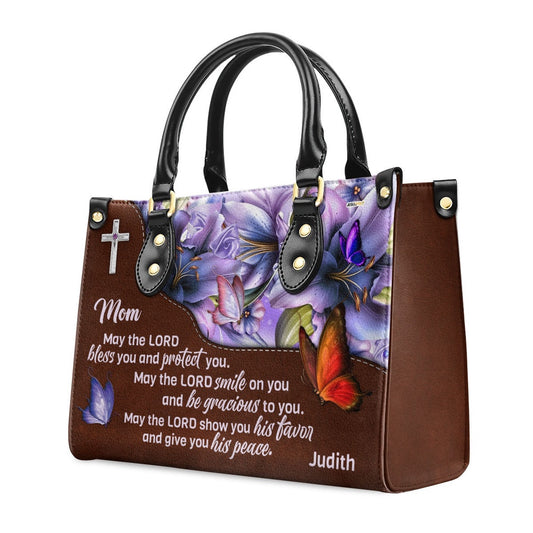 Personalized Christian Leather Bag, Meaningful Personalized Leather Handbag For Mom - May The Lord Bless You And Protect You, Faith Handbag