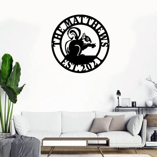 Personalized Metal Monogram Sign, Squirrel Metal Sign, Cabin Decor, Camping Sign, Campground Sign, Camper Squirrel Decor, Squirrel Sign