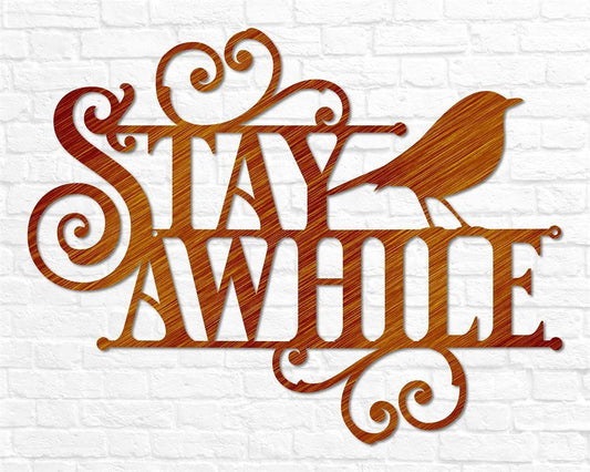Personalized Metal Monogram Sign, Stay Awhile Sign, Stay Awhile Metal Sign, Metal Welcome Sign Outdoor, Welcome Sign, Front Door Outdoor Bird