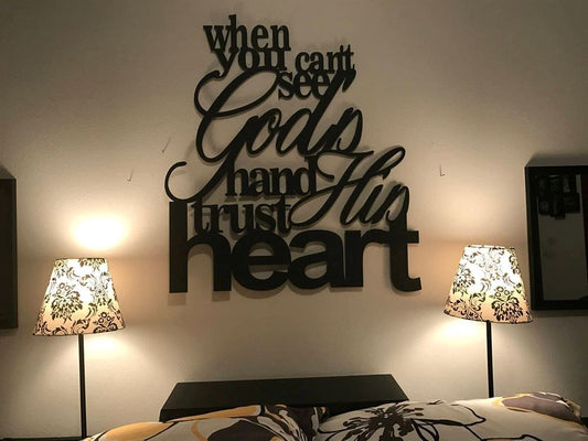 Personalized Metal Monogram Sign, When You Can't See God's Hand Trust His Heart Metal Wall Hang