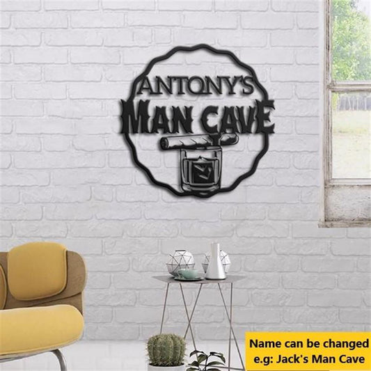 Personalized Metal Monogram Sign, Wine Lovers Man Cave Name Metal Wall Art, Cut Metal Sign