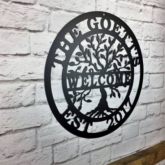 Personalized Metal Monogram Sign, Welcome Tree Of Life With Name Wall Family Tree, Tree Of Life Wedding Gift, Family Metal Wall Decor