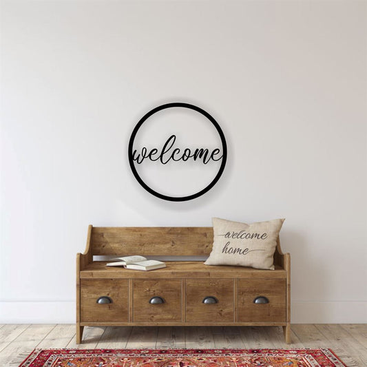 Personalized Metal Monogram Sign, Welcome With Round Border Metal Wall Decor, Entryway Decor Living Room Decor, Kitchen Decor Thanksgiving