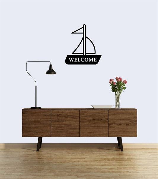 Personalized Metal Monogram Sign, Welcome With Sailboat Marine Themed Laser Cut Solid Steel, Decorative Home, Accent Wall Sign Hanging