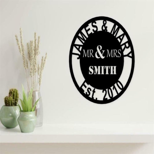 Personalized Metal Monogram Sign, Wedding Anniversary Gift Mr And Mrs Personalised Metal Sign, Living Room Decor