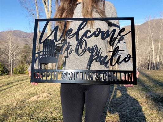 Personalized Metal Monogram Sign, Welcome Patio Sign, Patio Sign, Welcome To Our Patio Sign, Metal Patio Sign, Metal Welcome To Our Patio Sign