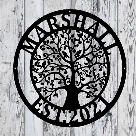 Personalized Metal Monogram Sign, Tree Of Life Metal Sign, Wedding Gift, Housewarming Stainless Steel Weatherproof Metal Wall Art