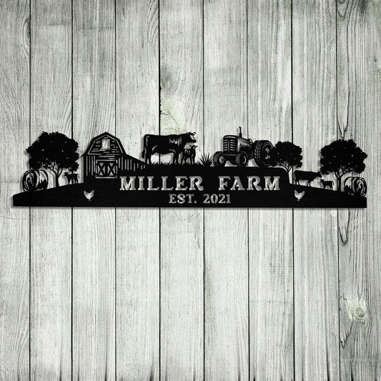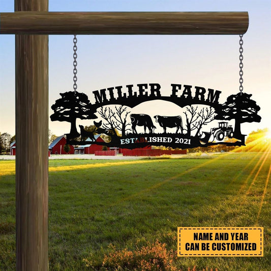 Custom Metal Farm Sign, Cow Tractor Outdoor Farmhouse Ranch Barn Front Gate Wall Decor Art, Gift Ideas For Farm Woman, Outdoor Metal Sign Frames