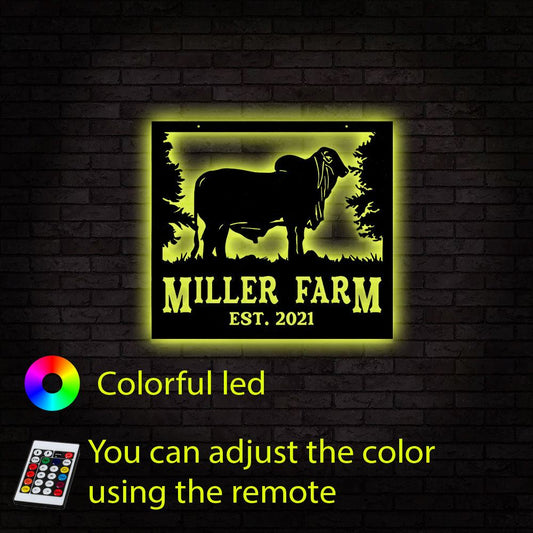 Custom Metal Farm Sign, Brahman Cattle Cow Outdoor Farmhouse Ranch Front Gate Wall Decor Art, Gift Ideas For Farm Woman, Outdoor Metal Sign Frames