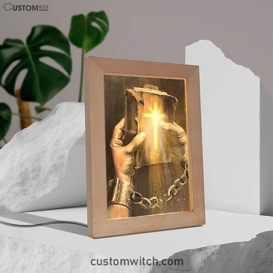 Bible Jesus Hands Light Cross Frame Lamp Art - Bible Verse Wooden Lamp - Inspirational Art - Christian Home Decor