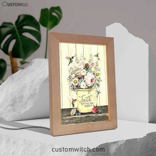 Faith It Till You Make It Hummingbird Flower Flower Frame Lamp Art - Christian Night Light - Bible Verse Wooden Lamp