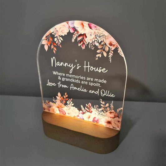 Personalised Floral LED Lamp For Mother's Day, Nanny's House 3D Led Light Wooden Base, Mother's Day Led Light