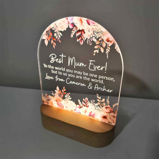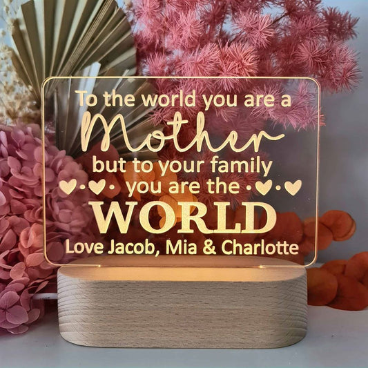 Personalised Floral LED Lamp For Mother's Day, You Are The World 3D Led Light Wooden Base, Mother's Day Led Light