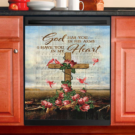 God Has You In His Arms Dishwasher Cover, Red Rose Cardinal Wooden Cross Dishwasher Stickers, Bible Verse Kitchen Decor