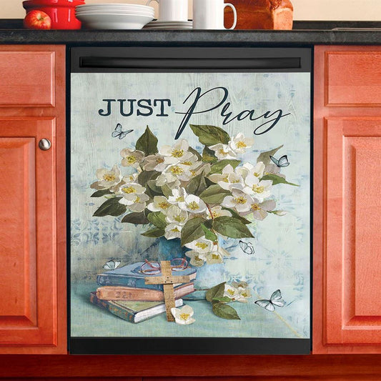 Jasmine Book Wooden Cross Just Pray Dishwasher Cover, Christian Dishwasher Stickers, Bible Verse Kitchen Decor