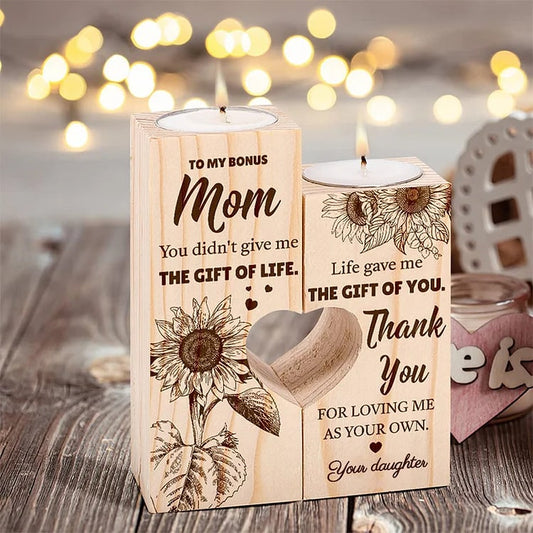 Mother's Day Candle Holders, To My Bonus Mom Wooden Candlestick Shelf Couple Decoration Gift