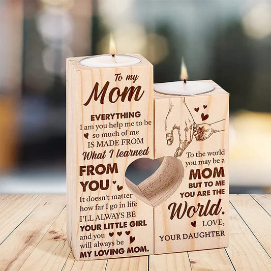 Mother's Day Candle Holders, To My Mom, I Love You With All My Heart, Wooden Candlestick