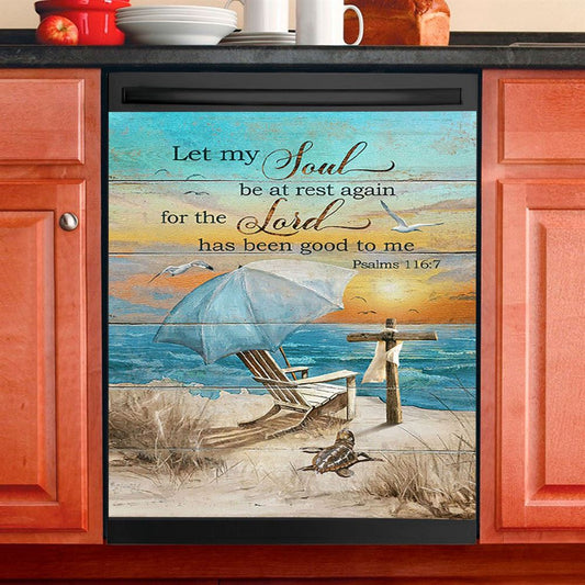 Let My Soul Be At Rest Again Blue Ocean Sunset Wooden Cross Dishwasher Cover, Bible Verse Dishwasher Wrap, Christian Kitchen Decoration