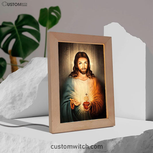 Stunning Heart Walking With Jesus Frame Lamp Frame Lamp Art - Christian Night Light - Bible Verse Wooden Lamp