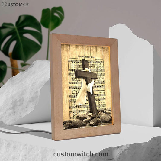 The Old Rugged Cross Frame Lamp - Black Cross White Silk Music Sheet Frame Lamp Art - Bible Verse Wooden Lamp - Christian Home Decor