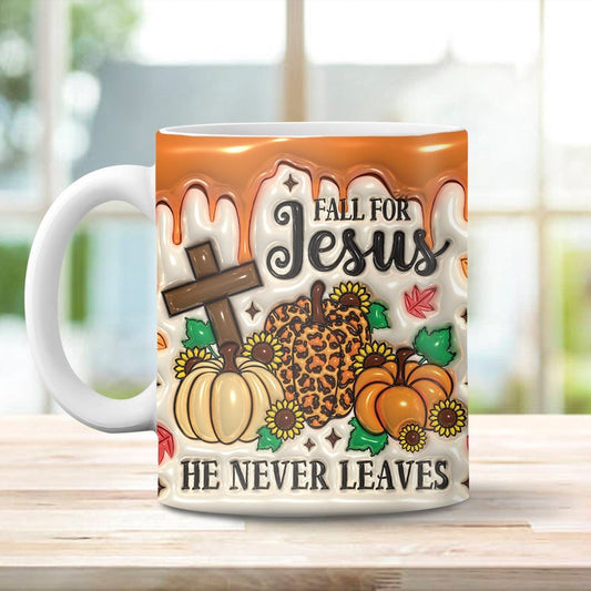 Christian 3D Mug, Fall For Jesus He Never Leaves Inflated Mug, Bible Verse Inflated Mug, 3D Jesus Mug, Religious 3D Mug