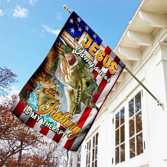 Jesus Is My Savior Bass Fishing Is My Therapy House Flag, Christian Flag, Christian Flag, Scripture Flag, Garden Banner