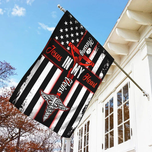 Nursing In My Veins Jesus In My Heart House Flags, Christian Flag, Scripture Flag, Garden Banner
