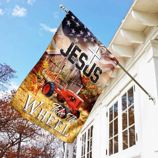 Tractor Jesus Take The Wheel House Flags, Christian Flag, Scripture Flag, Garden Banner