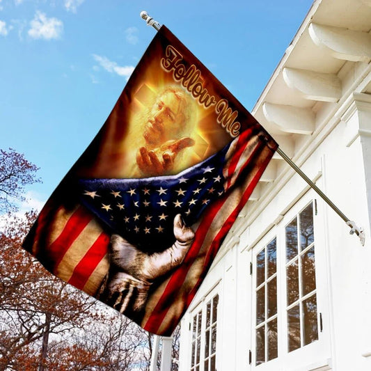 Follow Me Christian American Jesus Hand Flag, Outdoor Christian House Flag, Christian Flag, Scripture Flag, Garden Banner
