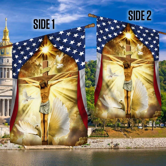 Jesus Christ With Cross American House Flags With Dove House Flags, Christian Flag, Scripture Flag, Garden Banner