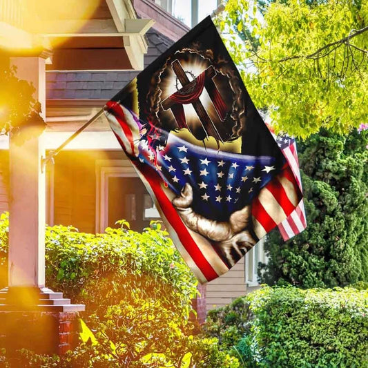 Jesus Christ Crucified On The Cross In American Flag, Outdoor Christian House Flag, Christian Flag, Scripture Flag, Garden Banner