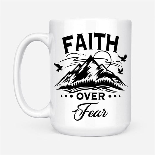 Faith Over Fear Mountain Coffee Mug, Christian Mug, Bible Mug, Faith Gift, Encouragement Gift