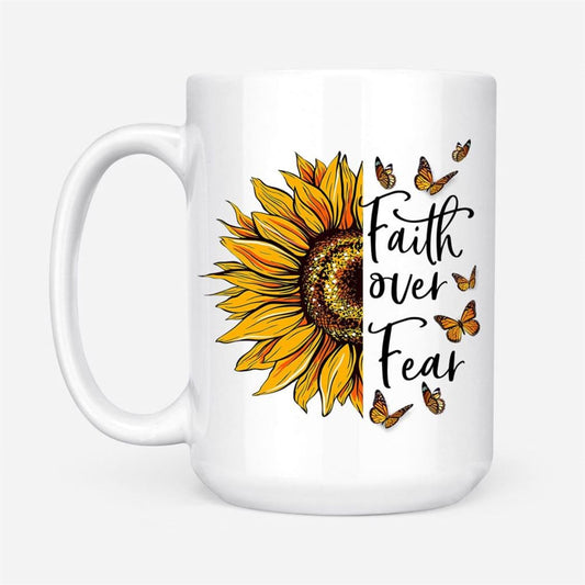 Faith Over Fear, Sunflower, Butterfly, Christian Coffee Mug, Christian Mug, Bible Mug, Faith Gift, Encouragement Gift