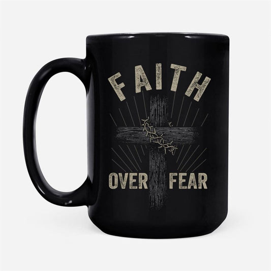Faith Over Fear, Crown Of Thorns Cross, Coffee Mug, Christian Mug, Bible Mug, Faith Gift, Encouragement Gift