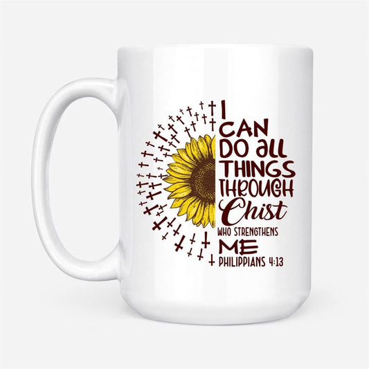I Can Do All Things Through Christ Philippians 413 Sunflower Christian Coffee Mug, Christian Mug, Bible Mug, Faith Gift, Encouragement Gift