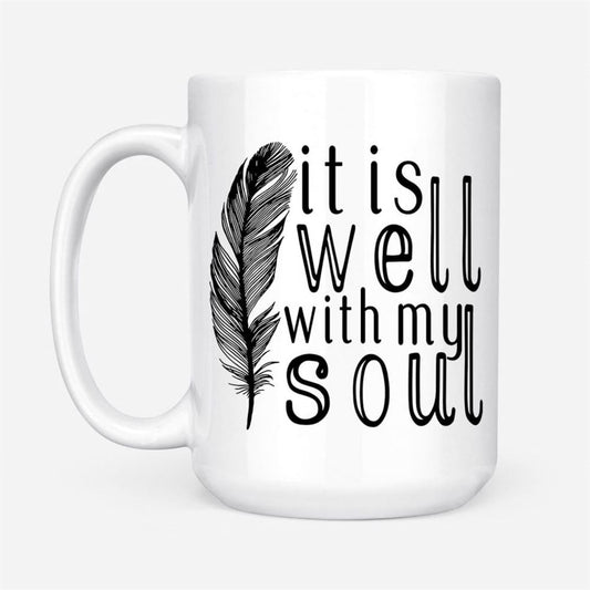 It Is Well With My Soul, Feather, Christian Coffee Mug, Christian Mug, Bible Mug, Faith Gift, Encouragement Gift
