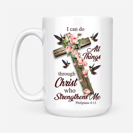 I Can Do All Things Through Christ, Cross With Flowers, Coffee Mug, Christian Mug, Bible Mug, Faith Gift, Encouragement Gift