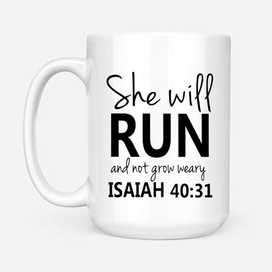 Isaiah 4031 She Will Run And Not Grow Weary, Bible Verse Coffee Mug, Christian Mug, Bible Mug, Faith Gift, Encouragement Gift