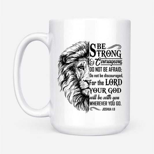 Joshua 19 Be Strong And Courageous, Lion Face, Christian Coffee Mug, Christian Mug, Bible Mug, Faith Gift, Encouragement Gift