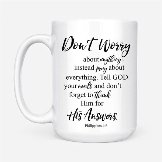 Philippians 46 Don’T Worry About Anything, Bible Verse Mug, Christian Mug, Bible Mug, Faith Gift, Encouragement Gift