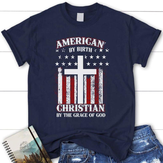American By Birth Christian By The Grace Of God Women Christian T Shirt, Blessed T Shirt, Bible T shirt, T shirt Women