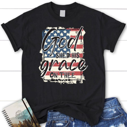 American Flag, God Shed His Grace On Thee T Shirt, Blessed T Shirt, Bible T shirt, T shirt Women