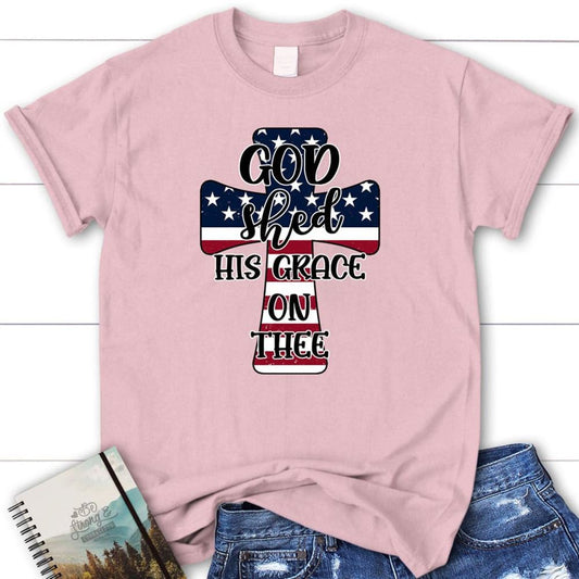 Christian T Shirt Cross American Flag God Shed His Grace On Thee, Blessed T Shirt, Bible T shirt, T shirt Women