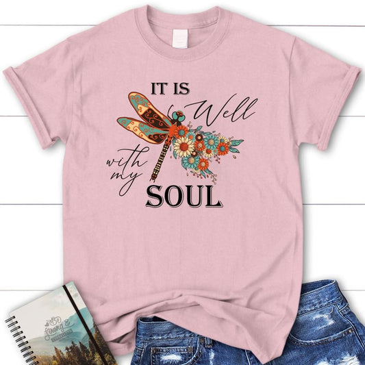 Christian T Shirt, It Is Well With My Soul, Dragonfly Flowers, Blessed T Shirt, Bible T shirt, T shirt Women