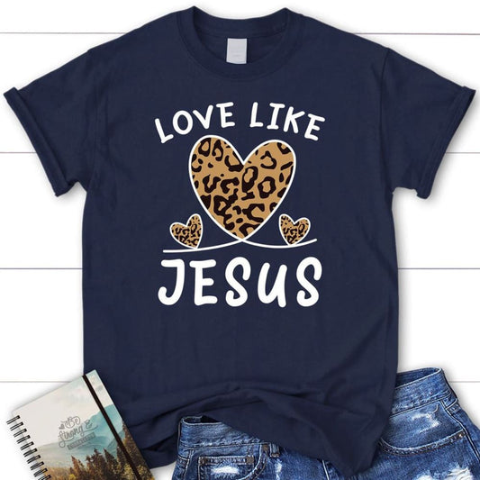 Christian T Shirt, Love Like Jesus Leopard, Blessed T Shirt, Bible T shirt, T shirt Women