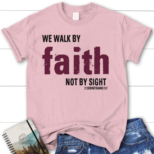 Christian T Shirts 2 Corinthians 57 We Walk By Faith Not By Sight T Shirt, Blessed T Shirt, Bible T shirt, T shirt Women