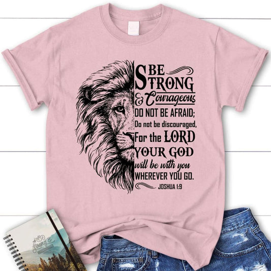 Christian T Shirts Lion Face, Be Strong And Courageous Joshua 19 T Shirt, Blessed T Shirt, Bible T shirt, T shirt Women