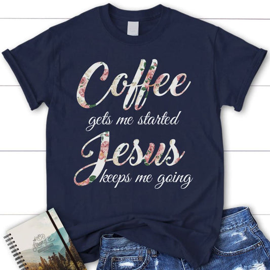 Coffee Gets Me Started Jesus Keeps Me Going Christian T Shirt, Blessed T Shirt, Bible T shirt, T shirt Women