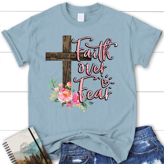 Christian T Shirts Faith Over Fear Cross With Flowers T Shirt, Blessed T Shirt, Bible T shirt, T shirt Women